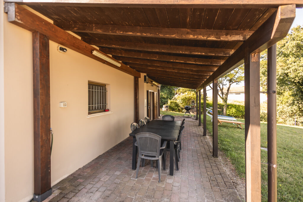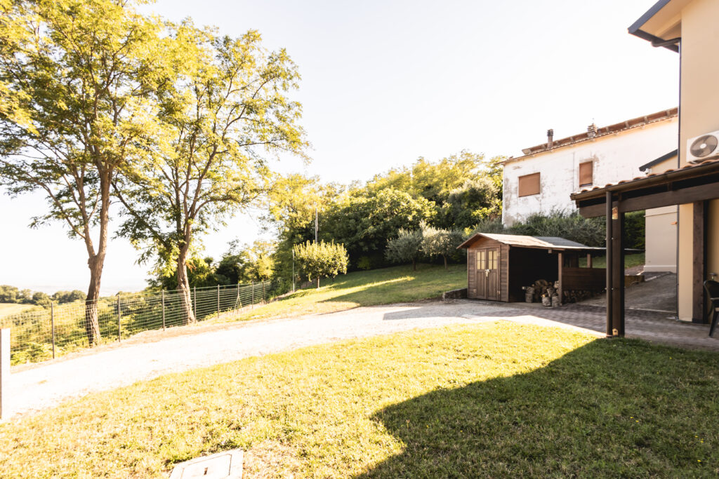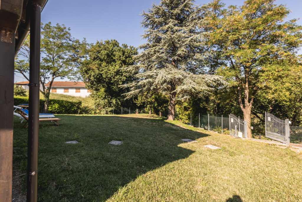 Fuori, 1.000 mq di giardino sono il tuo laboratorio a cielo aperto: spazio per auto, area giochi, barbecue… e ancora metri liberi da plasmare come vuoi.